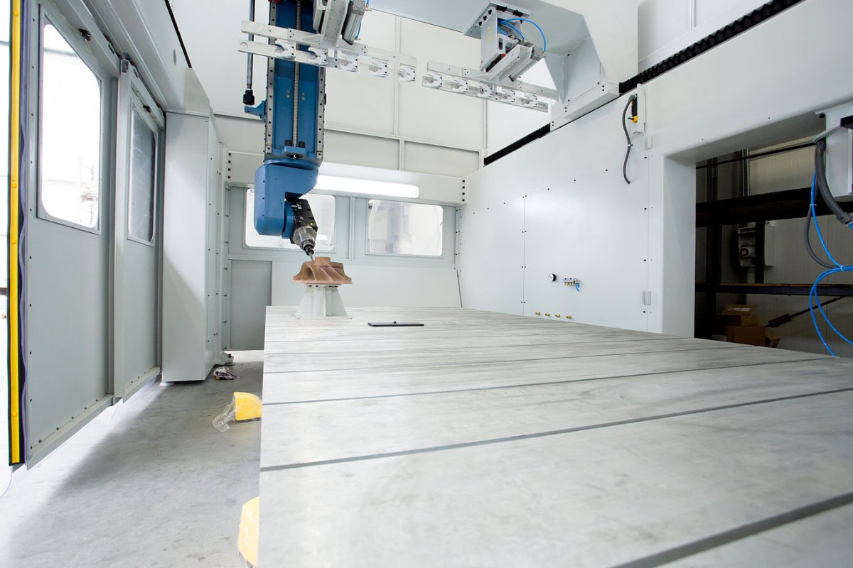 The processing area allows the production hall to remain clean, even while working with dusty materials.