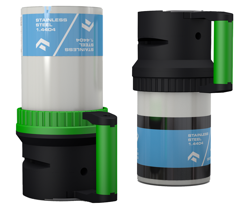 The NFC-Tag increases safety in material use (no pairing of different materials possible), ensures powder quality and automatically detects closing cycles.